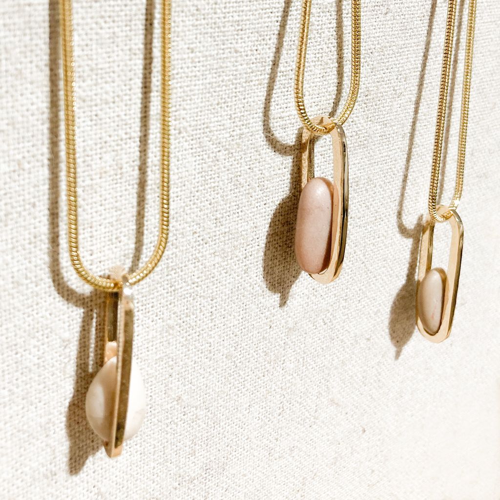 ▹每條項鍊的鵝卵石紋都是獨一無二。